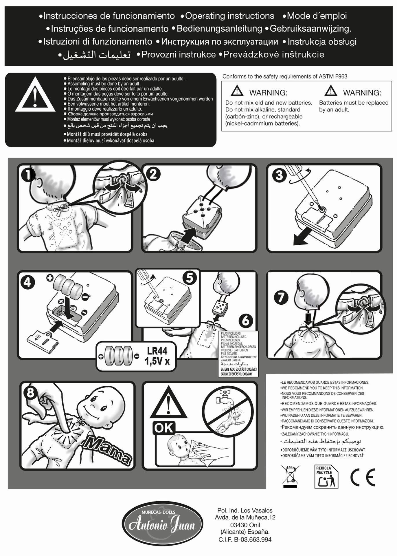 Beim Drücken des Bauchs sagt die Puppe „Mama“, „Papa“ und lacht authentisch wie ein Baby – fördert emotionale Entwicklung und Rollenspiel.