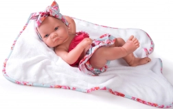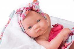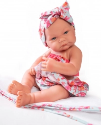 Entdecken Sie das Baby Nica der Marke ANTONIO JUAN – eine wunderschön gestaltete, realistische Puppe, die mit zarten Gesichtszügen, babytypischen Fältchen und einem natürlichen Hautton begeistert. Die Ganzvinyl-Ausführung aus Weichvinyl fühlt sich angenehm an, ist pflegeleicht und ermöglicht sicheres Baden (dabei sollten die Wimpern nicht nass werden).