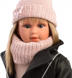 Entdecken Sie die bezaubernde Puppe Llorens Carla in der Größe 40 cm – handgefertigt in Spanien aus hochwertigen Materialien. Sie hat realistische Gesichtszüge, blaue Augen mit langen Wimpern und einen weichen Stoffkörper mit Vinylgliedern. Ein stylisches Outfit mit Jacke in Lederoptik, Rock mit Fuchs-Print, gestrickter Mütze und Schlauchschal wird durch eine reizende Handtasche ergänzt. Eine großartige Wahl für kreatives Spielen und Umziehen.