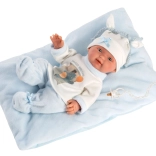 Die Puppe Bebito zeichnet sich durch hochwertige Verarbeitung und Stil aus, die Blüschen, Strampler, Mütze und Kissen umfassen. Der Satz enthält auch einen dekorativen Schnuller. Die Puppe ist in einer dekorativen Box verpackt.