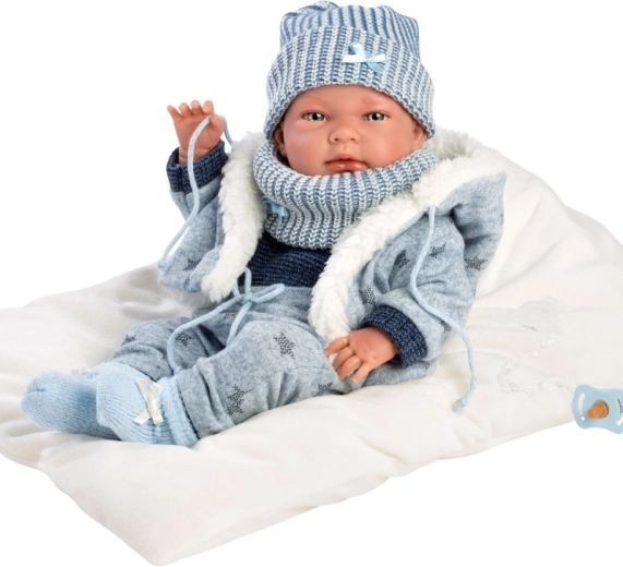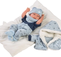 Die Llorens New Born Junge ist eine realistische Babypuppe mit einem Ganzkörper-Vinyl-Körper, die bis ins kleinste Detail naturgetreu gestaltet ist, inklusive niedlicher Babyfalten und Geschlechtsmerkmalen.