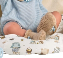 Die Verpackung enthält stilvolle Kleidung einschließlich Body, Mütze, Socken, Schal und Schlafsack zusammen mit einem dekorativen Schnuller. Jede Puppe ist sorgfältig in einen dekorativen Karton verpackt, um das Auspacken zu einem Erlebnis zu machen.