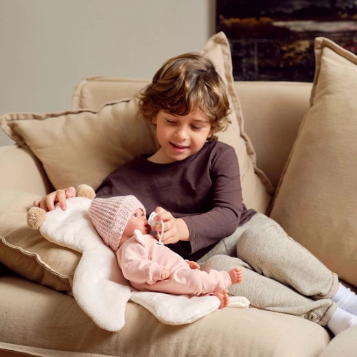 Die realistische Puppe Llorens New Born bringt Kindern sanfte Fürsorge und Freude am Rollenspiel. Der weiche Stoffkörper ist angenehm zum Kuscheln, realistische Gesichtszüge und Geräusche verleihen dem Spiel Authentizität. Beim Drücken auf die Brust sagt die Puppe „Mama“, „Papa“ und weint – das unterstützt die Entwicklung von Empathie und Fürsorgefähigkeiten.