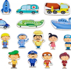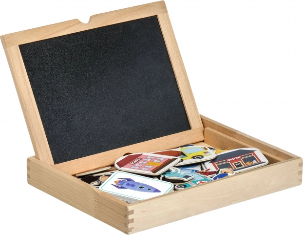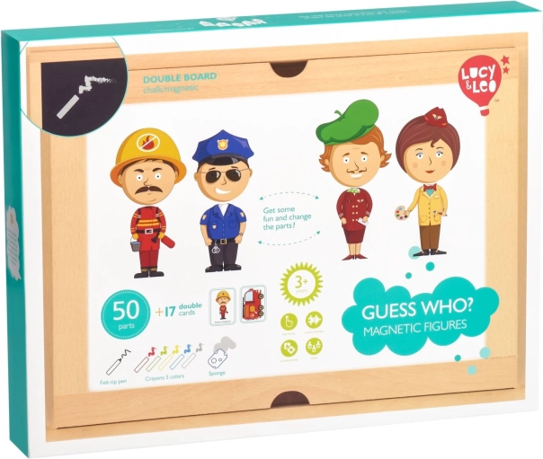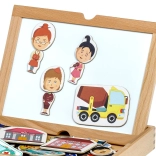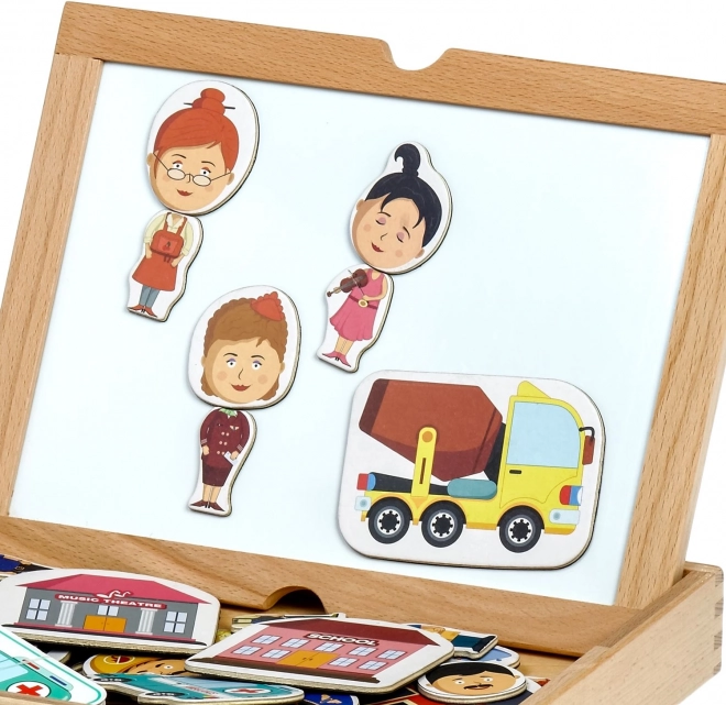 Dieses kreative Magnetset bringt Kindern spielerisch die Welt der Berufe näher – vom Feuerwehrmann und Polizisten bis hin zum Koch oder Piloten. Dank der beidseitigen Karten können Kinder die richtigen Kombinationen legen oder eigene Figuren und Szenen gestalten. Der praktische Holzkoffer mit Magnettafel sorgt für eine bequeme Aufbewahrung aller Teile und ein einfaches Mitnehmen auf Reisen.