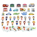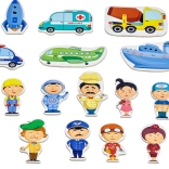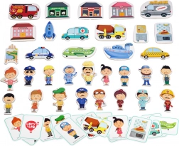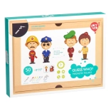 Die umfangreiche Sammlung magnetischer Teile und beidseitiger Karten motiviert Kinder sowohl zum richtigen Zuordnen als auch zu freier Kreativität beim Entdecken verschiedener Berufe.