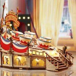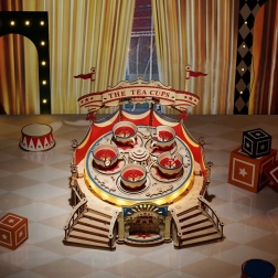 Bauen Sie eine bezaubernde Spieluhr mit Tassenkarussell, inspiriert von Zirkuszelten und Freizeitparks. Das Modell bietet Motorantrieb, LED-Beleuchtung, berührungsempfindliche Steuerung von Bewegung und Klang und spielt die romantische Melodie Wind and Moon. Es erwartet Sie eine Herausforderung mit 280 präzise geschnittenen Teilen und schwierigem Schwierigkeitsgrad – ideal für begeisterte Bastler und Liebhaber von Designmodellen.