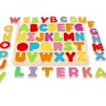 Dieses Holzpuzzle mit Großbuchstaben unterstützt Kinder dabei, das Alphabet spielerisch zu meistern, fördert die Hand-Auge-Koordination und trainiert Geduld. Die robuste Tafel mit 1,2 cm Stärke sorgt für Stabilität und Langlebigkeit, die einzelnen Teile lassen sich leicht einsetzen und herausnehmen.