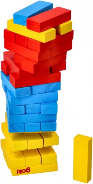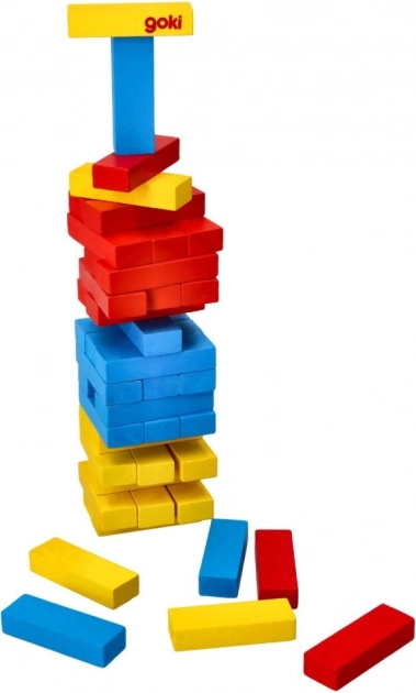 Dieses klassische Balance-Spiel aus hochwertigem Holz der Marke GOKI bietet einfache Regeln und maximalen Spielspaß. Jede Ebene besteht aus drei farbigen Steinen, und die Aufgabe der Spieler besteht darin, vorsichtig Klötze aus den unteren Ebenen herauszuschieben und oben aufzulegen. Der Turm muss stehen bleiben – es gewinnt, wer die Balance am längsten hält.