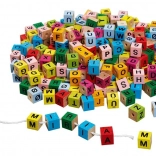 Bunte Buchstaben zum Auffädeln sind ein unterhaltsames und lehrreiches Spiel für Kinder ab 3 Jahren, das die Feinmotorik und Kreativität fördert.