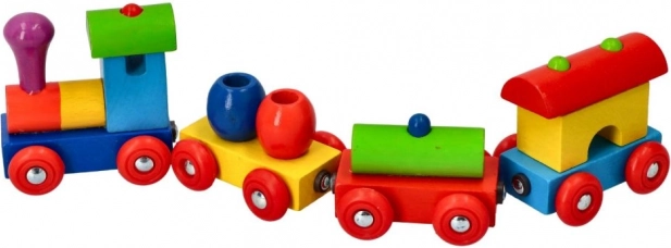 Dieser Zug ist aus Holz gefertigt und in leuchtenden Farben bemalt, die die Aufmerksamkeit der Kinder auf sich ziehen und bei der Entwicklung der Farberkennung helfen.
