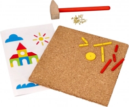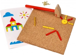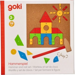 Machen Sie Ihren Kindern eine Freude mit dem Spielzeug Goki Nagelspiel Lustiges Haus. Dieses Set enthält bunte geometrische Formen, die die Kinder mit einem kleinen Holzhämmerchen auf die Korkplatte nageln können. Dieses pädagogische Spielzeug fördert die Feinmotorik und das kreative Denken.