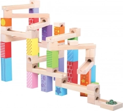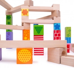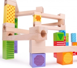 Diese Holzkugelbahn ist ideal für kreative Kinder, die gerne eigene Bahnen bauen. Enthalten sind 53 Teile, die viele Variationen und Designs ermöglichen, die von der kindlichen Fantasie abhängen.