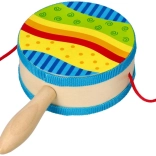 Die Trommel besteht aus Naturholz und hat kompakte Maße für Kinderhände. Ideal für gemeinsames Musizieren, den Musikunterricht in der Kita und fröhliches Tanzen zu Hause. Das farbenfrohe Design motiviert zum Entdecken von Rhythmen und stärkt Konzentration und Motorik.