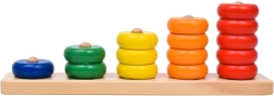 Dieses hochwertige Holz-Sortierspiel ist ideal für die ersten Schritte in die Welt der Zahlen und Farben. Kinder stecken vollfarbige Ringe auf einzelne Stifte gemäß den Ziffern auf der Basis und eignen sich so spielerisch Zählen, Sortieren und die Hand-Auge-Koordination an.