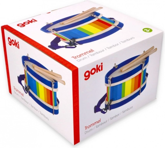 Die Trommel ist in kräftigen Farbkombinationen gestaltet, die die Aufmerksamkeit der Kinder anziehen und positive Energie ins Spiel bringen.