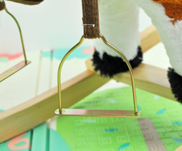 Die Kombination aus weichem Plüsch und Massivholz sorgt für ein stabiles und sicheres Schaukelerlebnis.