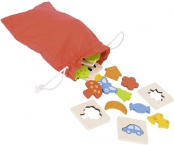 Das Tastspiel 'Erkenne die Formen' im Rahmen ist aus hochwertigem Naturholz gefertigt. Es enthält 16 Rahmen mit den Maßen 5,9 x 5,9 cm und 16 farbige ausgestanzte Formen, die den Tastsinn und die Sinneswahrnehmung der Kinder anregen. Durch einfaches Zusammenstellen und Suchen von Formen im Beutel wird Lernen zum Spaß. Das Spiel kann auf verschiedene Weise gespielt werden, einschließlich dem Erkennen von Formen nur durch Tasten, was seinen Reiz erhöht.