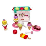 Bunte hölzerne Eiscremes und Süßigkeiten ermutigen Kinder, ihre eigene Geschichte des Eisverkäufers zu entwickeln und Rollenspiele zu spielen.