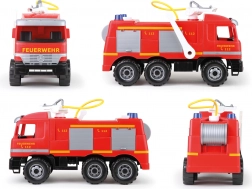 Das Feuerwehrauto von LENA bietet kleinen Feuerwehrleuten viel Spaß und Spielmöglichkeiten. Dieses Modell verfügt über einen seitlichen Stauraum und einen 1,5-Liter-Wassertank, was das realistische Spielvergnügen erhöht. Hergestellt aus hochwertigen Materialien, erfüllt es die europäischen Normen und hat eine CE-Zertifizierung.