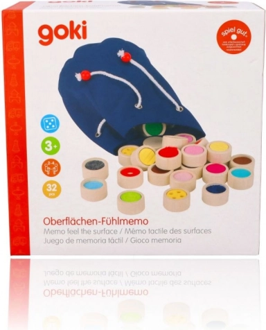 Die Verpackung enthält 32 Spielsteine, von denen jedes Paar eine andere Oberfläche hat, und einen praktischen Baumwollbeutel für die einfache Lagerung. Dank seiner hochwertigen Konstruktion ist das Spiel auch für Sehbehinderte geeignet und bietet nicht nur Spaß, sondern auch didaktischen Wert.