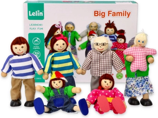 Diese detailreich gestaltete Familie ist die ideale Ergänzung für jedes Puppenhaus. Die Figuren aus Massivholz in farbigen Textilien sind angenehm anzufassen, sicher und langlebig für den täglichen Spielspaß. Dank der unterschiedlichen Größen (Eltern, Kinder, Baby) können Kinder leicht eigene Geschichten aus dem Familienalltag gestalten.