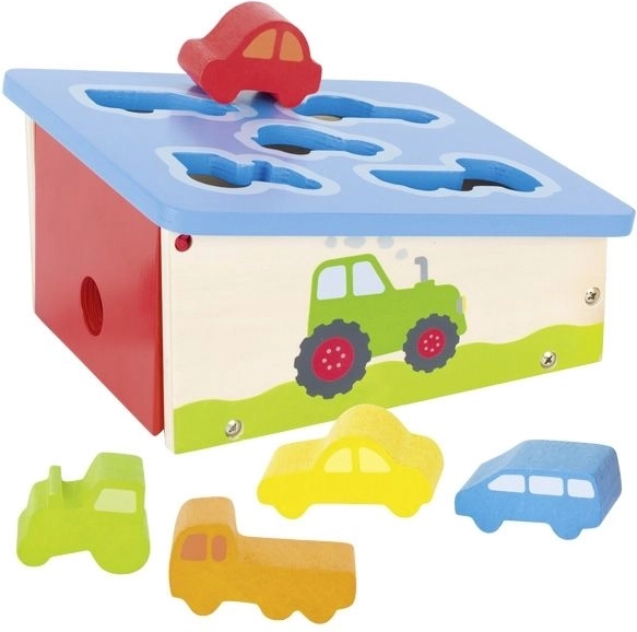 Diese hochwertige GOKI-Steckbox aus Holz mit öffnendem Deckel und Aussparungen in Fahrzeugformen ist das ideale Hilfsmittel für die ersten Entdeckungen der Formen. Kinder lernen spielerisch, Formen und Farben zu erkennen, entwickeln die Hand-Auge-Koordination und trainieren die Feinmotorik der Finger.