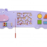 Diese multifunktionale sensorische Tafel in Nilpferdform von VIGA bietet Kindern eine spielerische Form des Lernens. Das magnetische Labyrinth mit zwei Stiften trainiert die Hand-Auge-Koordination und hilft beim Einprägen der Ziffern. Der Abakus unterstützt das Zählen bis 10, das Addieren und Subtrahieren, und der Formensortierer lehrt das Unterscheiden von Farben und geometrischen Formen.