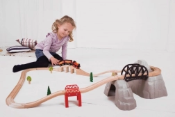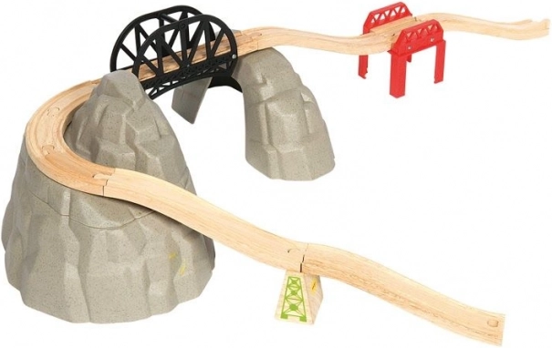 Begeben Sie sich auf ein Abenteuer mit diesem Holz-Eisenbahnset, das eine wunderschöne Gebirgsbahn bietet. Das Set enthält:
