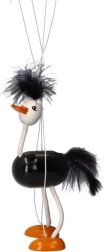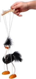 Kreatives und interaktives Spielen mit dieser Holzmarionette Strauß, ideal für Kinder ab 3 Jahren.