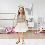 Der elastische Bund des Rocks passt sich leicht der Figur des Kindes an, das Material ist leicht und für langes Tragen geeignet.