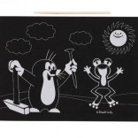 Erleben Sie kreativen Spaß mit dem Kratzen Bild mit dem Motiv von Maulwurf und seinen Freunden. Mithilfe eines Holzspachtels werden versteckte farbige Schichten enthüllt.
