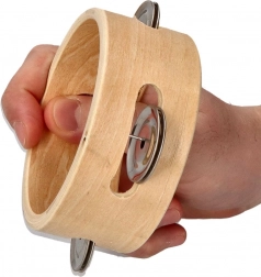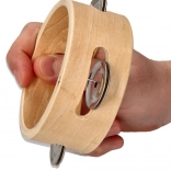 Das Tamburin besteht aus Naturholz, das Robustheit und eine ansprechende Optik gewährleistet.