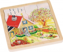 Jedes Bild auf dem Puzzle repräsentiert eine Jahreszeit, was den Kindern hilft, die Veränderungen in der Natur während des Jahres zu verstehen.