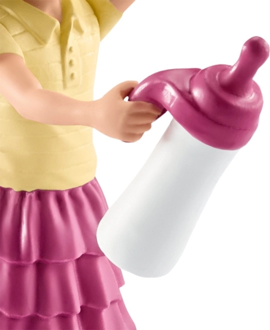 Die Mädchenfigur mit Flasche ermöglicht ein interaktives und lehrreiches Spiel, das Pflege und Empathie bei Kindern fördert.
