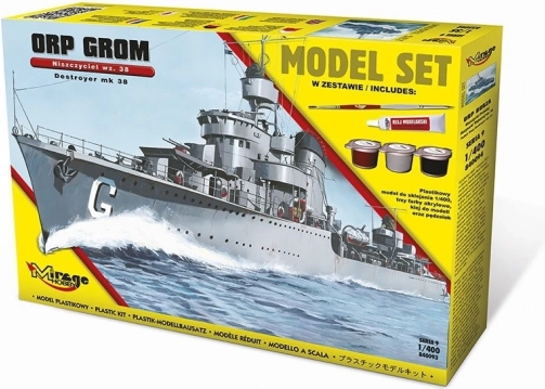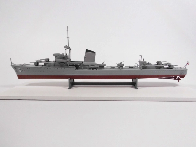 Dieses Bausatzmodell ist ideal für erfahrene Modellbauer, die eine originalgetreue Nachbildung des polnischen Zerstörers ORP 'Grom' aus dem Zweiten Weltkrieg anfertigen möchten. Im Maßstab 1:400 enthält das Modell detaillierte Teile und Zubehör, darunter: