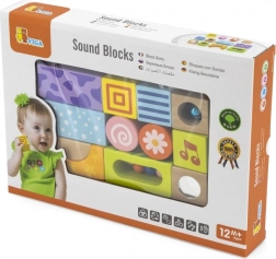 Dieses Set aus hölzernen Soundbausteinen bringt Kindern erste Freude am Bauen und am Entdecken von Klängen. Jeder Stein ist so gestaltet, dass er mit Farben, Mustern und verschiedenen Klangelementen (Glöckchen, Rasseln) fasziniert und Gehör sowie Hand-Auge-Koordination fördert.