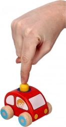 Das Auto hat auf dem Dach eine gelbe Hupe, die für zusätzlichen Spaß sorgt. Form und Größe sind so gestaltet, dass sie perfekt in kleine Kinderhände passen, was hilft, Bewegungskoordination und Geschicklichkeit zu entwickeln.