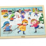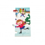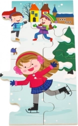 Die bunte Winterszene mit spielenden Kindern motiviert zum Puzzeln und schult die Wahrnehmung von Farben, Details und Situationen.