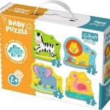 Entdecken Sie die Freude am ersten Puzzeln mit dem TREFL Baby-Puzzle-Set Tiere auf Safari 4-in-1. Jedes Puzzle hat eine unterschiedliche Teileanzahl (3, 4, 5 und 6), sodass das Kind den Schwierigkeitsgrad schrittweise steigern und Selbstvertrauen aufbauen kann. Starke, robuste und sichere Teile sind auf kleine Kinderhände zugeschnitten.