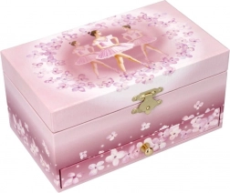 Das Design in zarten Rosatönen mit Ballerinen und Blumen wirkt romantisch und zeitlos. Das Schmuckkästchen ist ein dekoratives Objekt, kein Spielzeug, und eignet sich hervorragend als originelles Geschenk für kleine Damen und Ballettliebhaber.