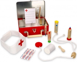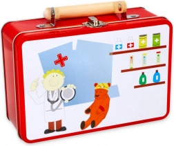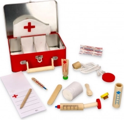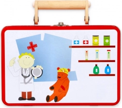 Fördern Sie Fantasie und soziale Fähigkeiten der Kinder mit einem hochwertigen Arztkoffer, der hölzerne und kindersichere Instrumente enthält. Das Metallgehäuse sorgt für Robustheit und Langlebigkeit, während die kompakten Abmessungen perfekt für Reisen und das Kinderzimmer sind.