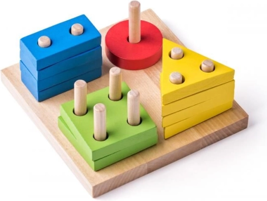 Dieses hochwertige, pädagogische Holzspielzeug vermittelt Lernen auf spielerische Weise: Das Kind sortiert und stapelt Formen nach Farben und der Anzahl der Öffnungen und stärkt so logisches Denken und Geduld. Die stabile Grundplatte und glatt geschliffene Teile sorgen für sicheres Spielen bereits ab 2 Jahren.