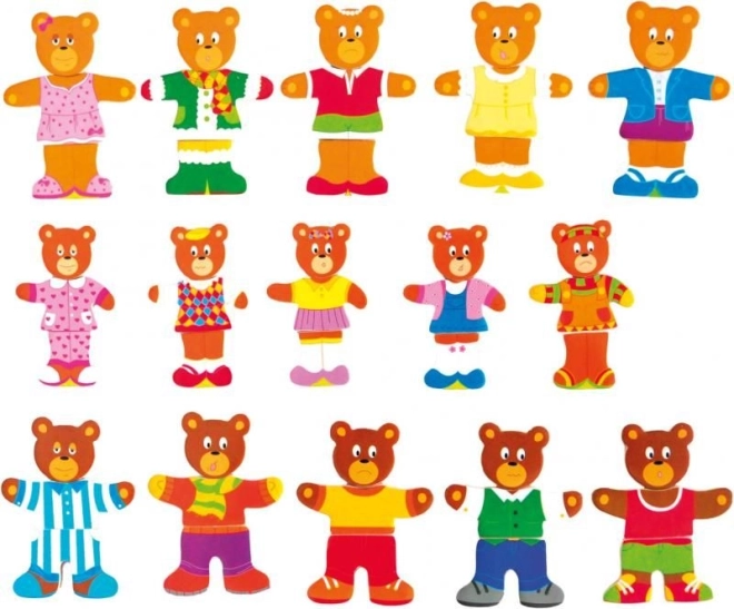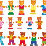 Kleiden Sie die Bärchen je nach Stimmung und Anlass und lernen Sie dabei, Formen und Farben zu kombinieren. Kinder wechseln spielend Köpfchen, Körperchen und Beinchen, schulen die Wahrnehmung und erfinden fröhliche Geschichten. Die praktische Holzschachtel hält alle Teile beisammen, und ihr Deckel dient als stabile Unterlage zum Zusammenlegen.