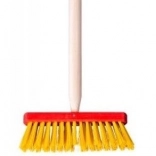 Gelbe Kunststoffborsten nehmen Krümel, Laub und Staub auf harten Oberflächen gut auf. Einfache Pflege und lange Lebensdauer.