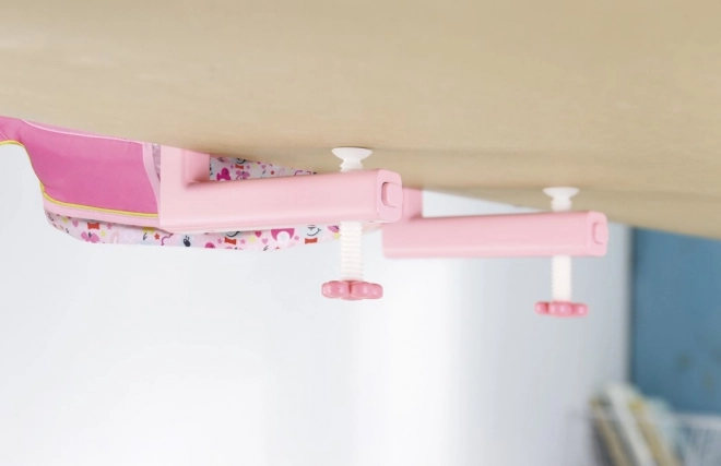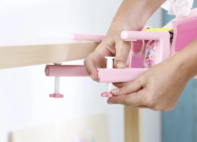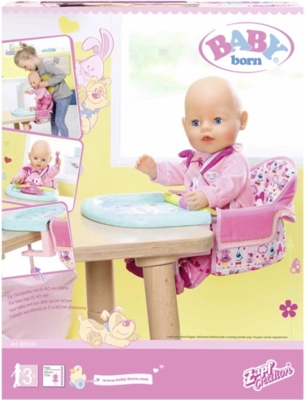 Das Trinken aus der Flasche und das Essen von Haferflocken sind zwei der Lieblingsbeschäftigungen von Baby Born. Dank des bequemen Sitzes zum Füttern kann die Puppe am Tisch platziert werden. Die Einheit ist aus einem weichen, aber robusten Stoff gefertigt und kann in wenigen einfachen Schritten an der Tischplatte befestigt werden.
