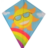 Die Diamantform und die leichte Nylonkonstruktion sorgen für stabilen Flug und schnellen Start selbst bei leichtem Wind. Ideal als erster Drachen für Familienausflüge.