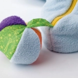 Dank der Vielzahl von Texturen und Farben hilft der Plüschhund, die sensorischen Fähigkeiten und die Kreativität des Kindes zu entwickeln.