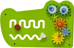 Bewegen Sie Elemente in den Bahnen und drehen Sie Zahnräder, die die „Augen“ des Krokodils in Bewegung setzen – hervorragendes Training für Feinmotorik und Koordination.