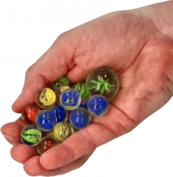 Glasmurmeln sind ein klassisches Spielzeug, das nie enttäuscht! Mit diesem Set erhalten Sie 21 Murmeln in verschiedenen Designs. Die Murmeln können eine einheitliche Farbe haben, durchsichtig mit farbigen Mustern innen oder bunt gepunktet sein, was ihnen ein einzigartiges Aussehen verleiht. Dank ihrer Vielfalt eignen sie sich sowohl für Kinder als auch als Dekoration.
