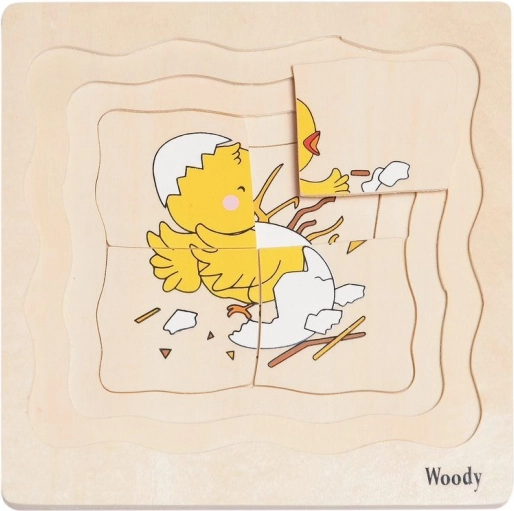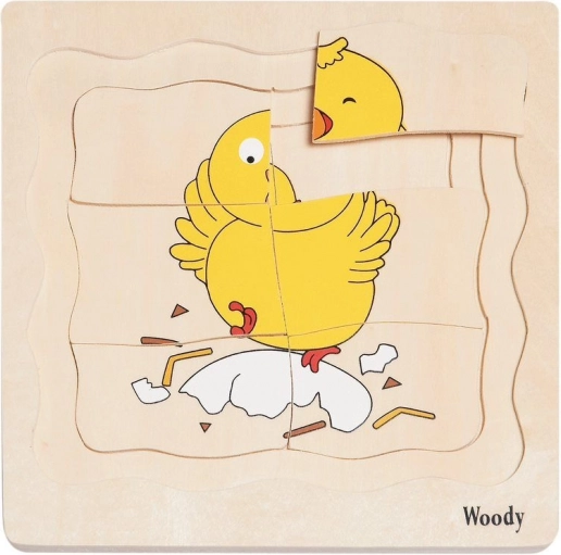 Holzpuzzle mit Schichten Hühnerleben 3+